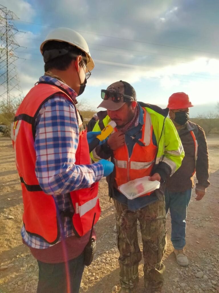 Ofrecemos aplicación de pruebas antidoping y alcoholimetría en sitio, adaptándonos a la operación de cada proyecto.